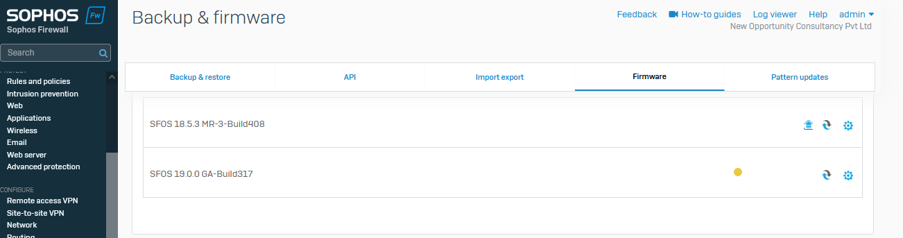 Sophos Firewall firmware version upgradation has been done.