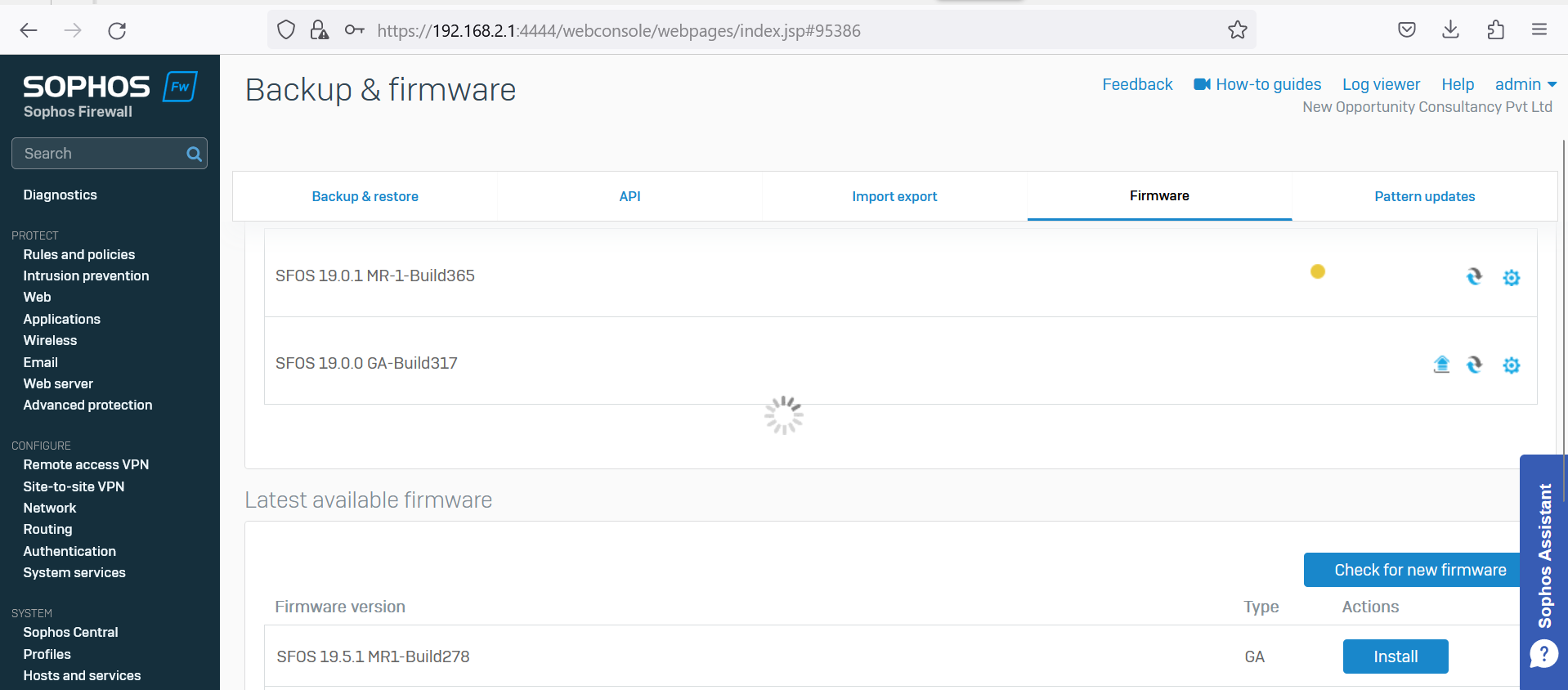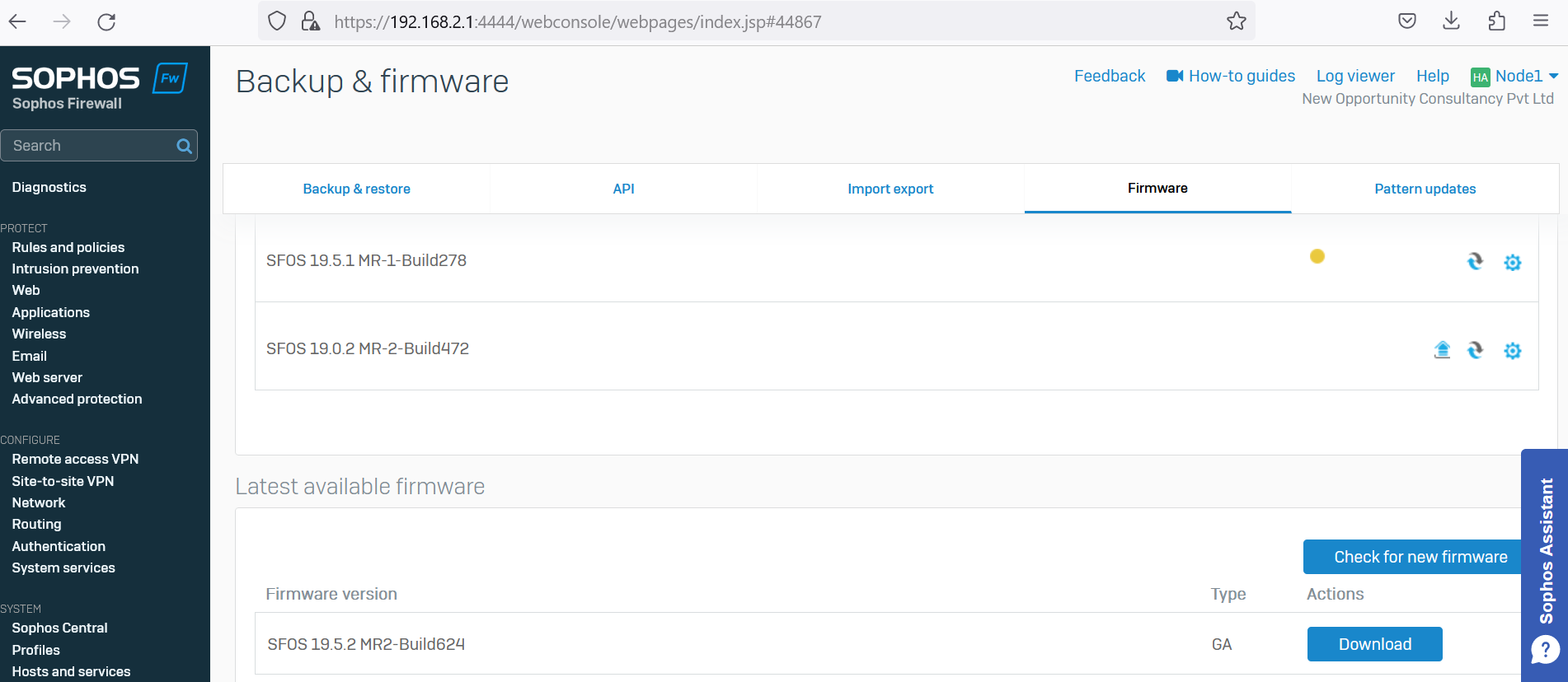 Sophos Firewall firmware version up gradation has been done.