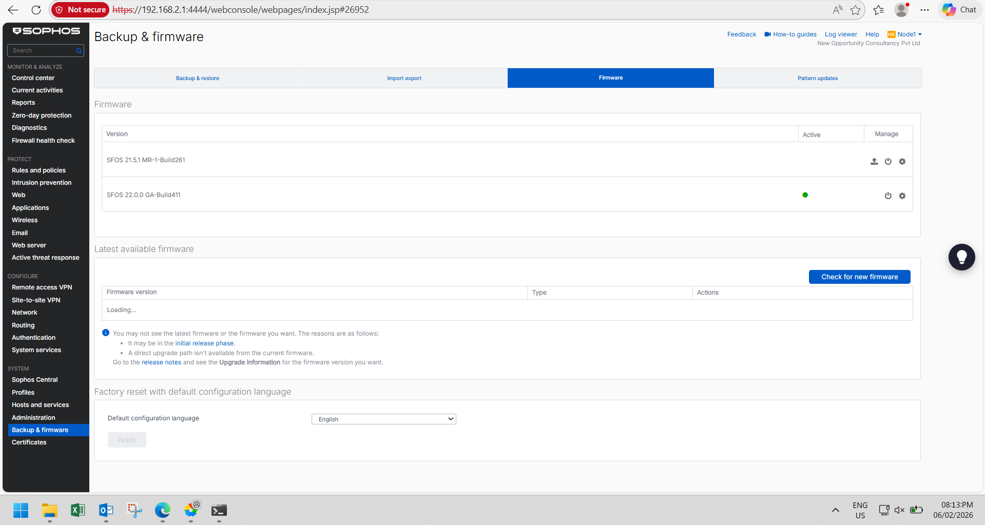 The Sophos Firewall firmware has been upgraded.